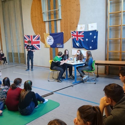 Bei einer tollen Abschluss-Show am Freitag konnten sich Eltern, Schüler der anderen Klassen und die Lehrerschaft ein eindrucksvolles Bild nicht nur von den schauspielerischen Qualitäten unserer 4. Klassler machen, sondern auch deren fremdsprachlichen Fähigkeiten bewundern. Alle sind sich einig: Eine tolle Projektwoche, die auch im nächsten Jahr wieder den 4. Klassen angeboten werden soll.